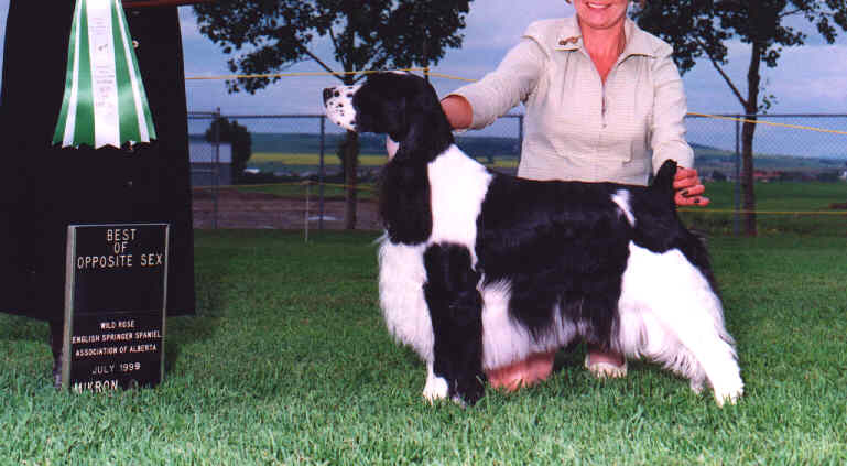 Libby was specialed by Shannon Scheer in 1999 & became a multi-Best of Breed winning bitch with numerous Best of Opposite wins. The BOS wins include 1 Specialty (WRESSAA) & 2 Booster wins (WRESSAA & English Springer Spaniel Club of Canada, ESSCC). In August of 2000, she was awarded the Best of Opposite Sex Springer of the Year by the English Springer Spaniel Club of Canada (ESSCC). She & her daughter Minnie love to perform in Brace -- they have won Best Braces in Group & 3 Best Braces in Shows (1 all-breed, 1 Group 1 Specialty Show, 1 ESS Specialty). Libby was also a junior handling partner for her friend Caitlin & helped her to qualify for the Alberta Junior Handling Finals. In August of 2004 she was partnered with a number of Junior Handlers at the WRESSAA & ESSCC Specialties.