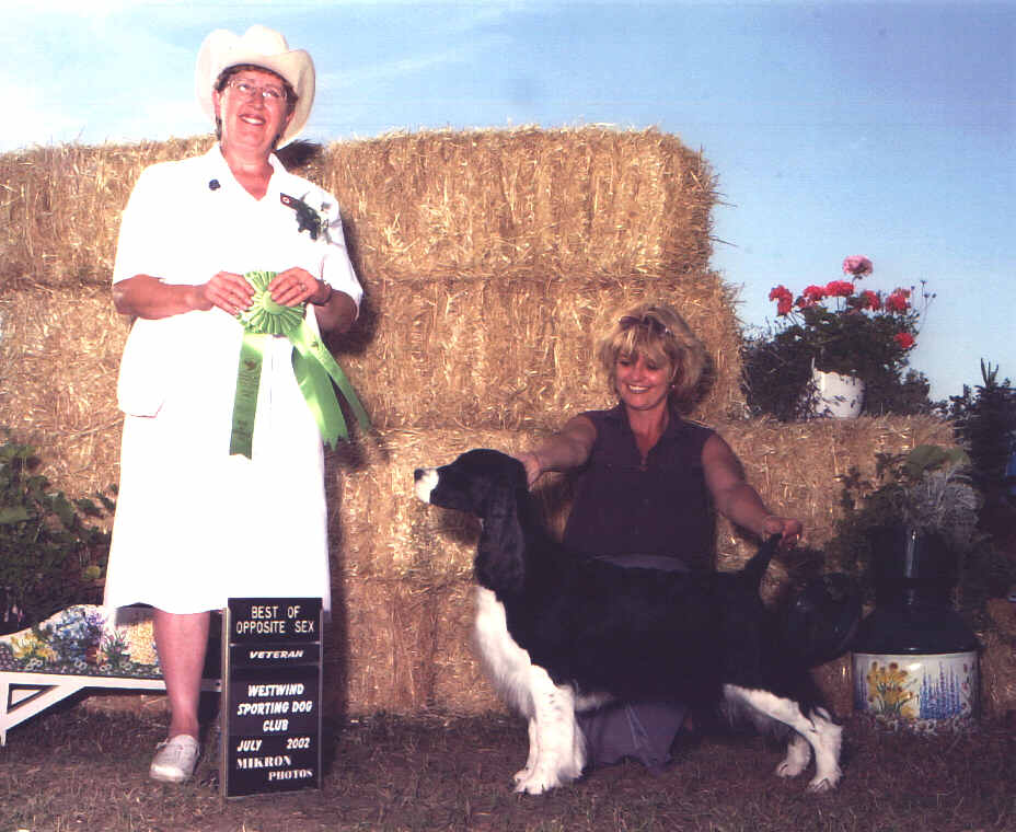 Gigi wins RWB WRESSAA's 2002 Specialty | Cally places in Veteran Bitch class ESSFTA 2002 | Minnie receives leg in Novice Agility & Novice Obedience ESSFTA 2002 | Cally wins BOS Westwind Sporting Dog Specialty |